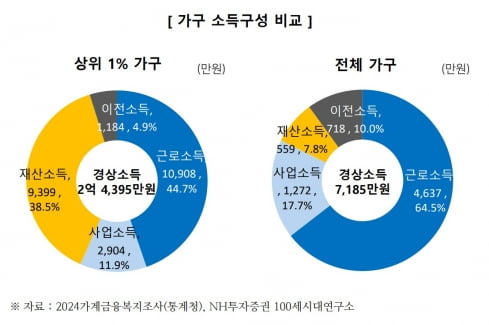 ‘돈 벌어주는 돈’…재산소득, 전체 평균 대비 16.8배 많아